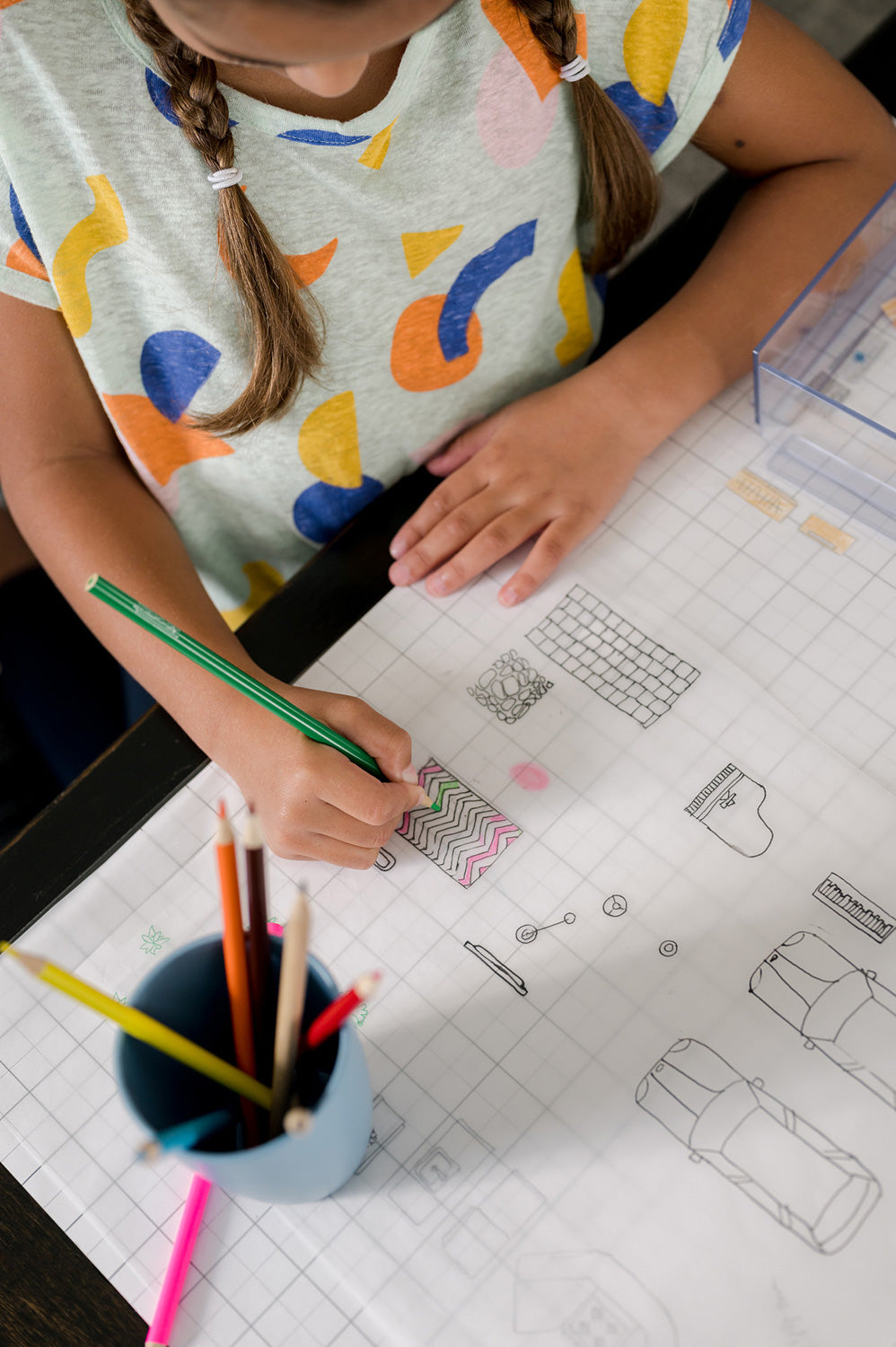 Aspiring architects and future interior designers practice their skills with this introduction to architecture. The detailed guidebook empowers creative kids to use their imaginations and bring floorplans to life as a 3D home model. Real architecture tools like a drafting triangle, compass, and protractor put the keys to success in their hands. Includes: Floor Plan Grid, 2 Base Boards, 36 Walls, 10 sheets of Tracing Paper, 4 pieces of Patterned Paper, 5 Floor Plan Tracing Sheets, 3 Wall Cling Sheets, Dry Erase Marker, Drafting Pencil, 8 Colored Pencils, Eraser, T-Ruler, Drafting Triangle with Protractor, Compass, Glue Dots and Glue Stick.