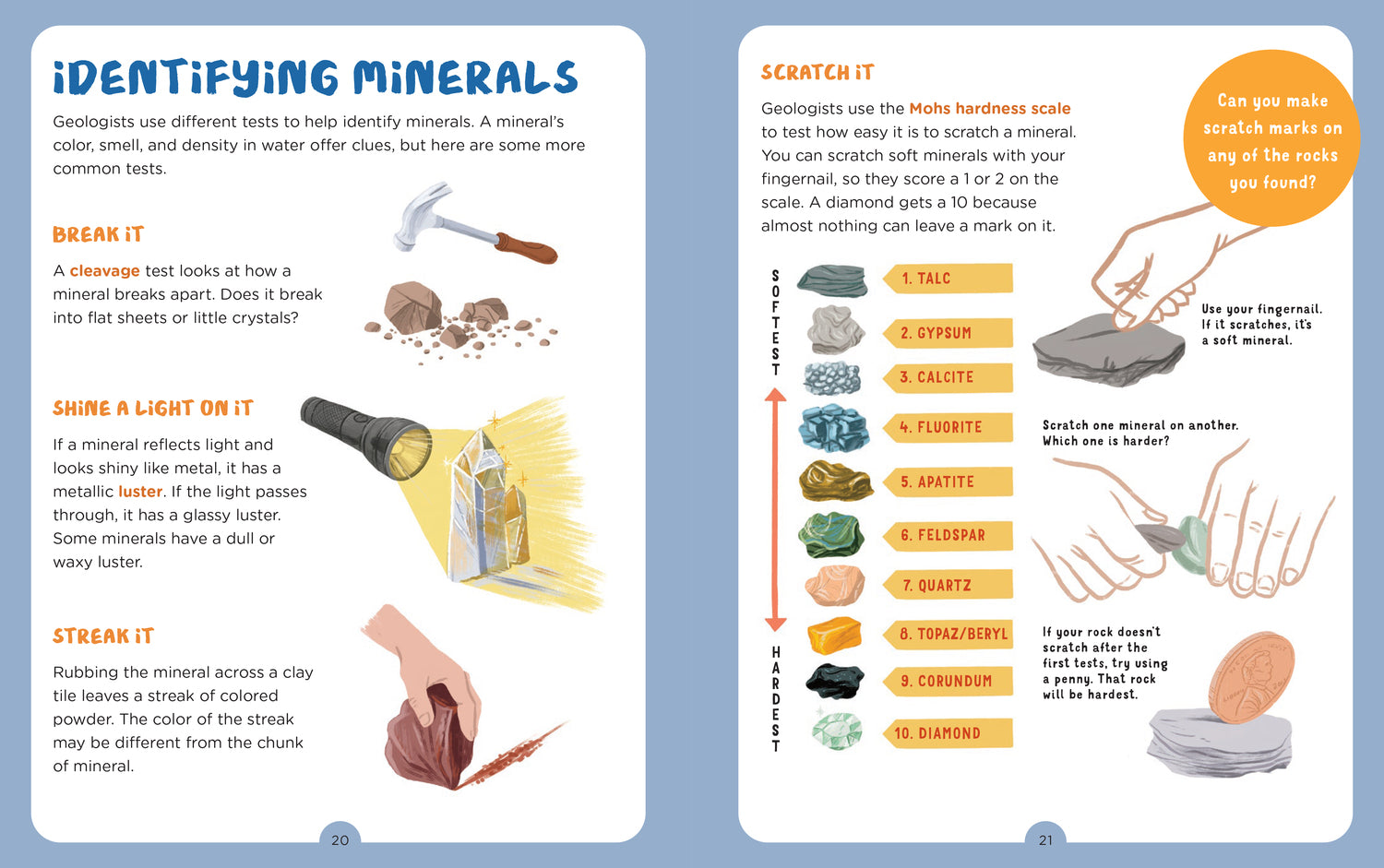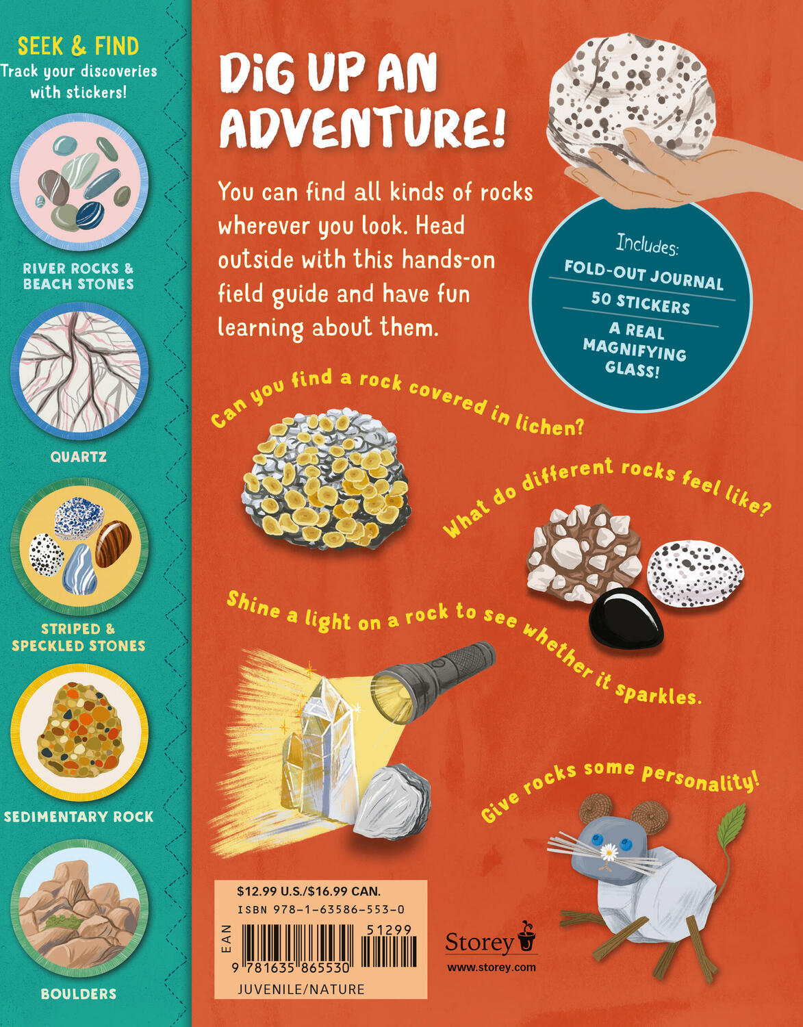 The latest addition to the best-selling Backpack Explorer series (455,000 copies in print) invites kids ages 4 and up to head outside and find, collect, and learn about rocks with this take-along activity book! Backpack Explorer: Rock Hunt is packed with prompts and activities, including: 12 interactive field guide pages introducing rock classifications (color, shape, size, texture); sensory scavenger hunts; hands-on outdoor creative activities; rock experiments; and discovery zone pages with facts about geology, landforms, igneous and metamorphic rocks, gems, fossils, and more. The book includes a real magnifying glass, stickers, and a log for recording rock finds, making it the perfect explorer guide for budding geologists, whether in a backyard, a city park, or a nature preserve.