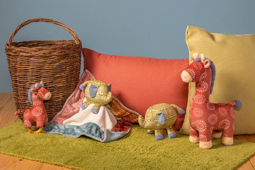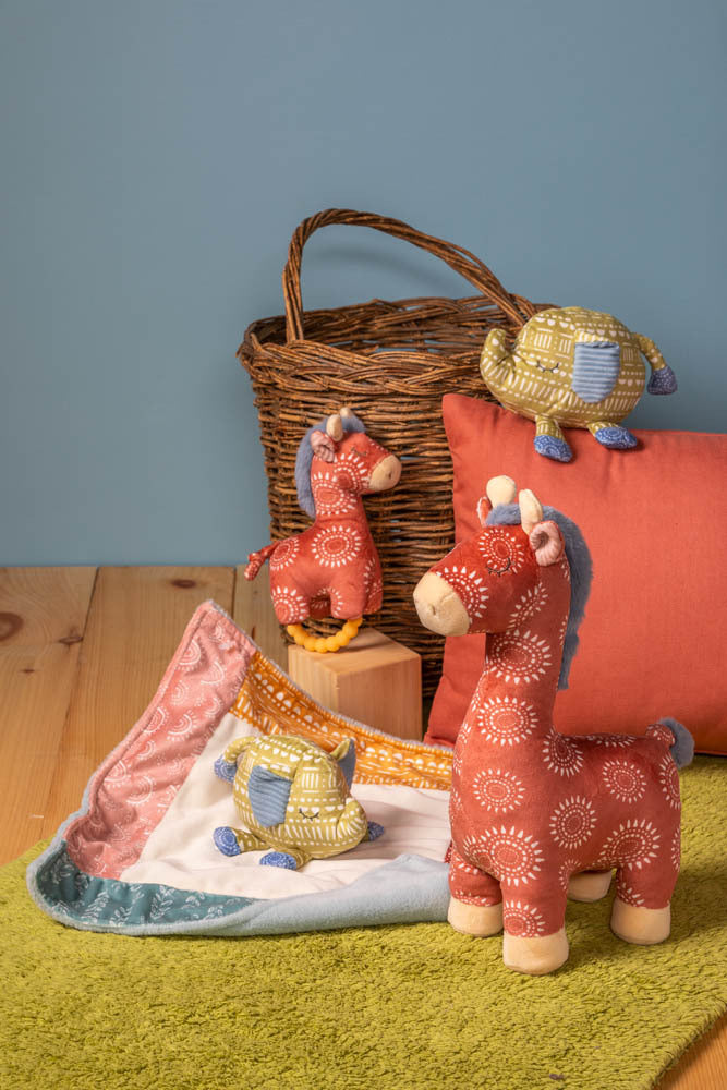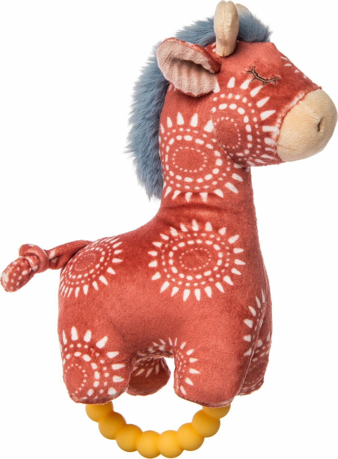 A rattle on the inside, and a silicone teether on the outside make this giraffe both stimulating and soothing