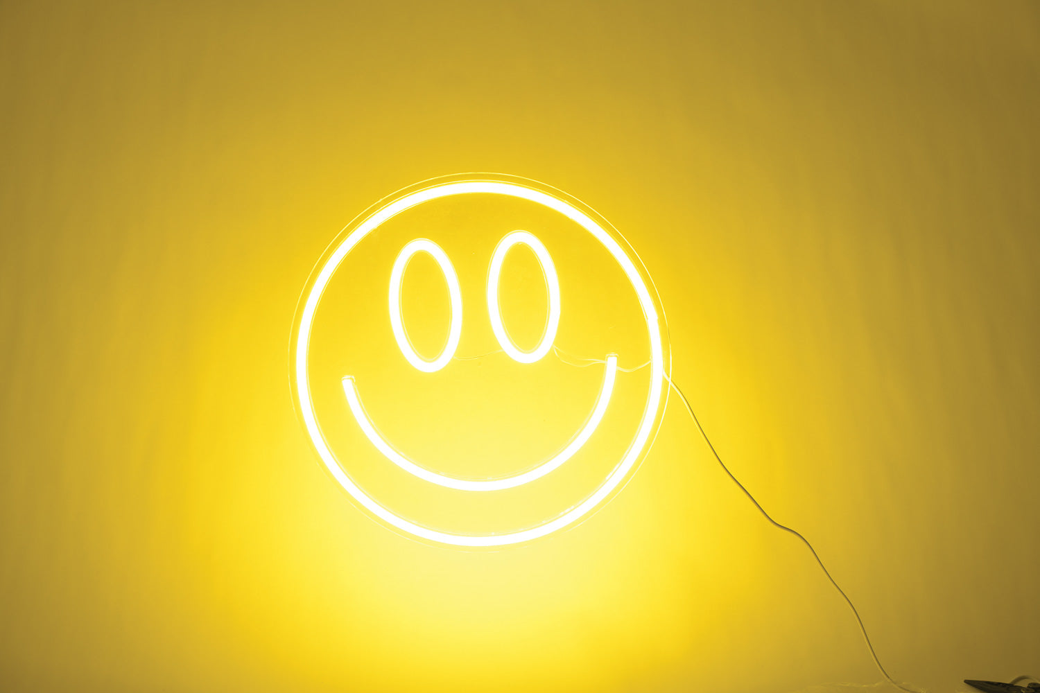 Illuminate your tween or teen's room with an on-trend neon light that will always keep them smiling! This 13" x 13" bright yellow LED wall light has a built-in USB cable, plugging into the wall with low energy consumption. Don't worry, be happy, and smile on!