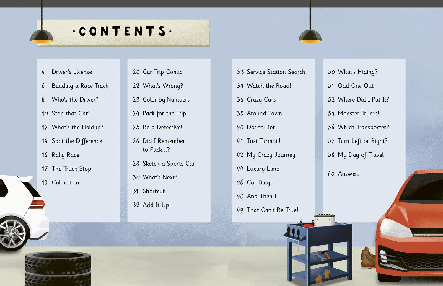 In the Car Activity Book: Includes puzzles, quizzes and drawing activities!