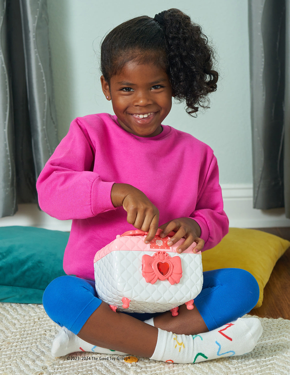 Set the secret code, stash your treasures, and sleep well knowing they're secure! Siblings learn to respect others' privacy with this cute pink safe. After entering the secret combination, it requires a "fingerprint" release to open. Requires 3 AA batteries, not included.