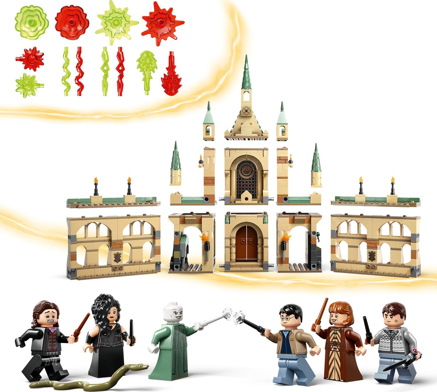 - Includes 6 LEGO minifigures: Harry Potter and Voldemort, each with a wand with attachable LEGO elements to create a ‘spell-casting’ effect