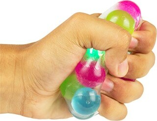 Filled with small transparent spheres and a color-changing light module, you get a great squishy feel as the light transmits through the mini balls inside.