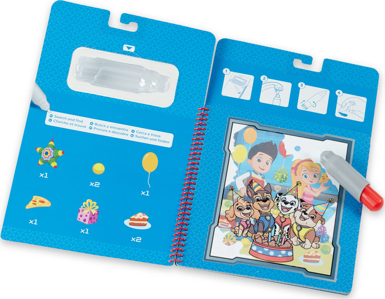 4 PAW Patrol-themed boards featuring the pup Chase, and refillable water pen. Reusable pages are white when dry, reveal colors when wet; search and find activities on every page. Chunky-size water pen is easy to fill, easy to hold. Compact, spiral-bound format - great for travel.