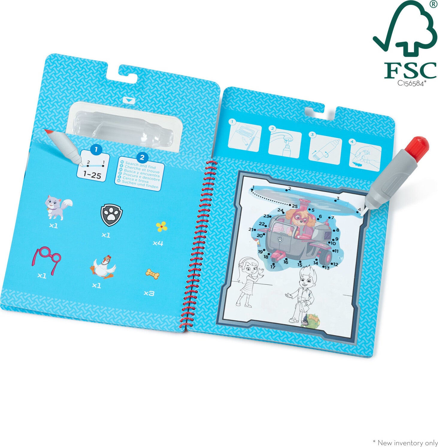 4 PAW Patrol-themed boards featuring the pup Skye, and refillable water pen. Reusable pages are white when dry, reveal colors when wet; search and find activities on every page. Chunky-size water pen is easy to fill, easy to hold. Compact, spiral-bound format - great for travel.