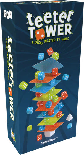 A Dicey Dexterity Game - Take this tower to the top! Work as team to roll dice and stack them on each new level. The challenge is that every tile limits dice placement by color and number. As the tower rises—so does the tension! Success will take coordination, cooperation, and a little bit of luck. Build with balance or watch your Teeter Tower topple!