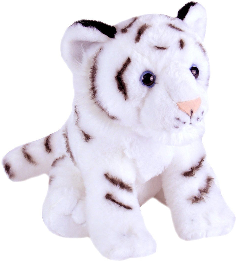 Here's a cuddly companion, pure and simple. A cloud-white cutie with baby black stripes and whisker markings, this super-soft stuffed animal plush looks almost like a wild white tiger cub. A great gift for both first-time parents and big cat fans.